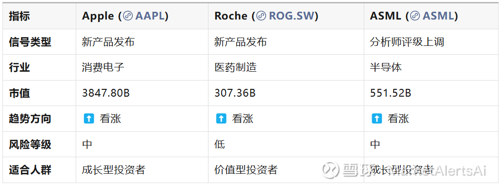 投资洞察:巴克莱银行将ASML的评级从持有上调至买入,这是一个强烈的积极信号。ASML作为半导体行业的关键供应商,其设备对于芯片制造至关重要。分析师上调评级反映了对其未来增长潜力的信心,特别是在人工智能和高性能计算需求推动下的半导体市场扩张。这一评级调整可能会吸引更多投资者关注ASML,从而推高股价。