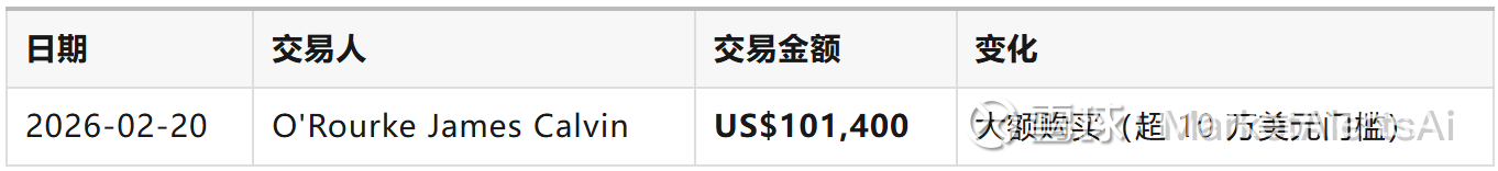 投资洞察:这个信号的特殊性在于, timber REIT 属于典型的防御性资产,通常在经济不确定性增加时受到资金青睐。高管在 2026 年 2 月这个时间点增持,可能暗示公司认为当前估值偏低,或者预期木材需求将在未来几个季度回暖。对于寻求稳定现金流的投资者而言,内部人增持的 REIT 值得重点关注。