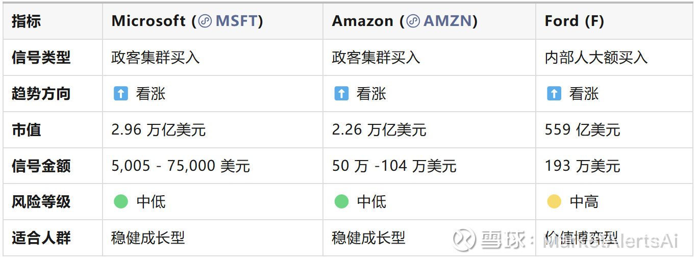 ✅ 科技股逻辑:政客们集中买入微软和亚马逊,可能看好 AI 基础设施和云计算的长期增长