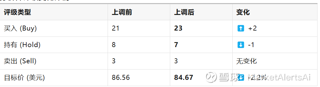 ✅ 共识转强:买入评级增加、持有评级减少,显示分析师群体信心增强