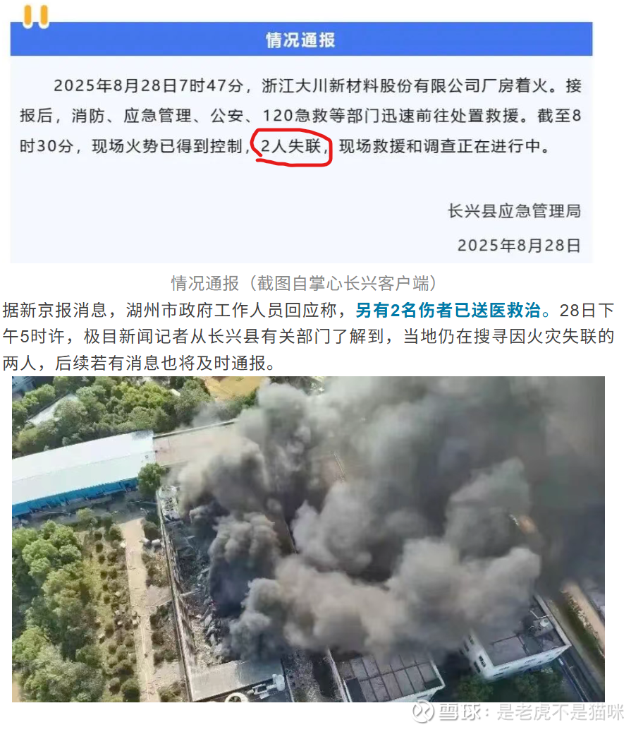 浙江大川安全事故,不是起火,而是爆炸,是反应釜爆炸,是上半年山东高密农药厂爆炸一样,看现场图片就知道了,而且有2人失联,懂的都懂,既然是爆炸,那复产没个2年就不要想了。