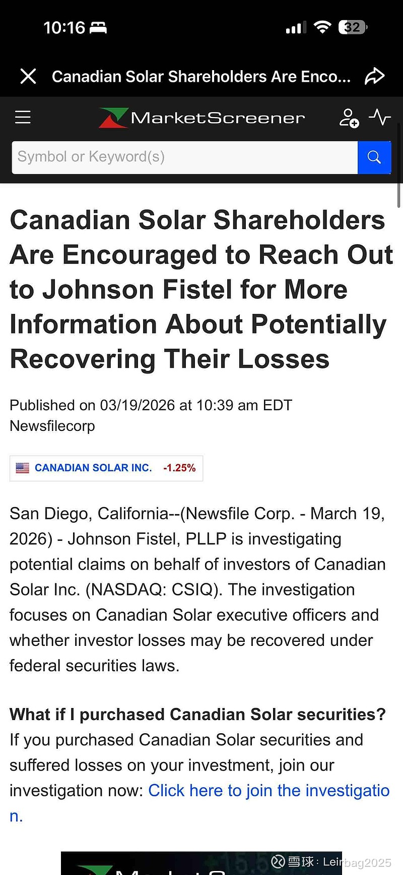 关于近期的投资者诉讼新闻,原贴在这,可能需要翻墙: