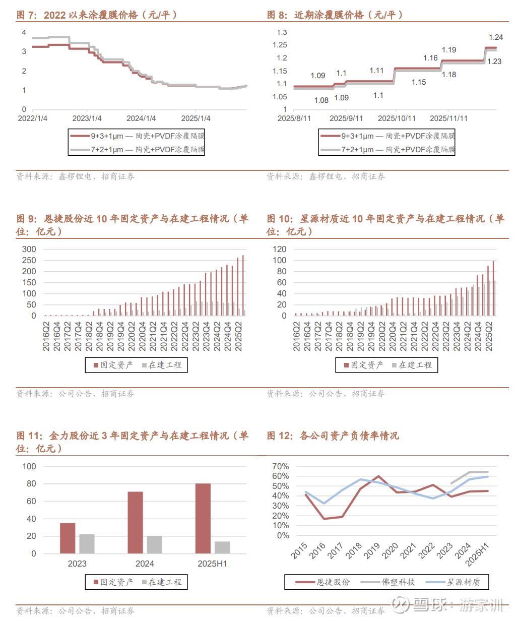 截止2025年6月末,公司总产能已达约58亿平方米,2026年初在建产能全部投产,逐步爬坡后,预计2027年公司产能超70亿平方米,其中超7成是23年之后投放的新产能,均为可生产超薄高强隔膜的大宽幅、高精度先进产线。