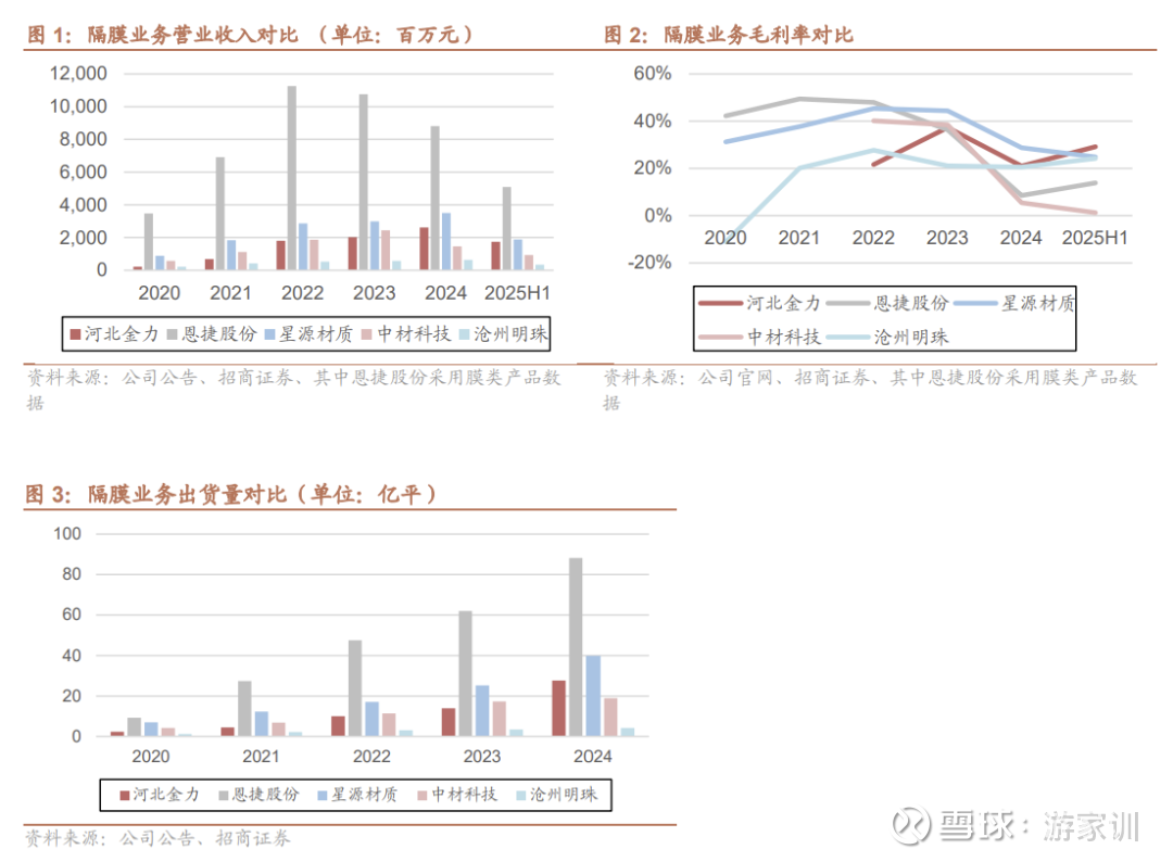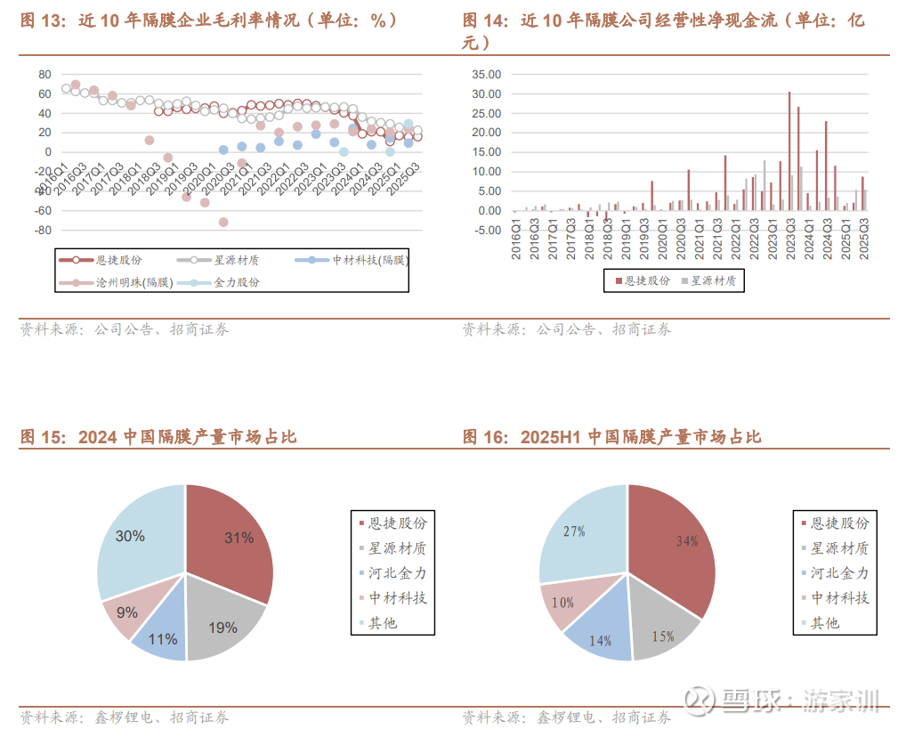 行业格局进一步集中,头部企业优势明显。2025H1隔膜行业CR4超70%,较2024年进一步提升。头部企业在客户、规模、技术、成本等方面都拥有较强的优势,在这一轮行业周期里保证了自己的份额,并且进一步绑定了海外大客户,签下了多个战略订单,未来产品销量有保障。