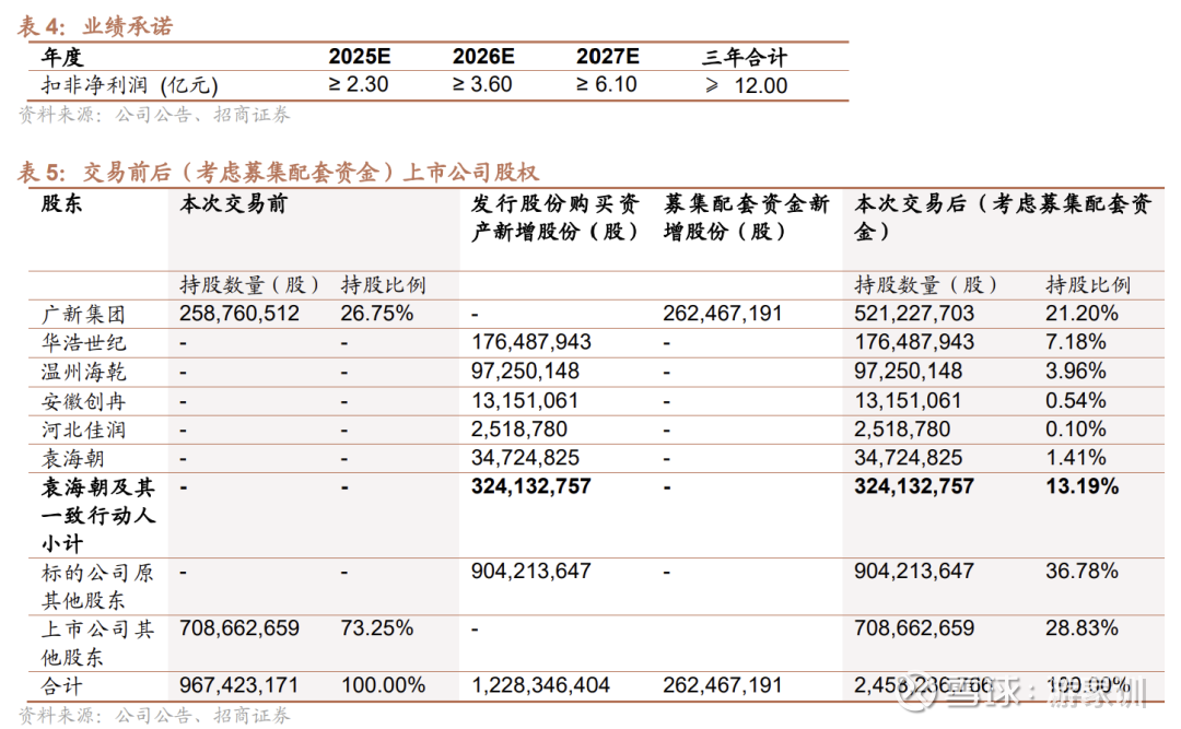 为保障上市公司利益,标的核心股东袁海朝、华浩世纪8方承诺,标的公司在2025、2026、2027年度实现的扣非净利润分别不低于2.3亿元、3.6亿元和6.1亿元,三年累计承诺净利润达12亿元。若未能在2025年底完成交割,业绩承诺期将顺延至2028年,2028年承诺净利润不低于4.0亿元。