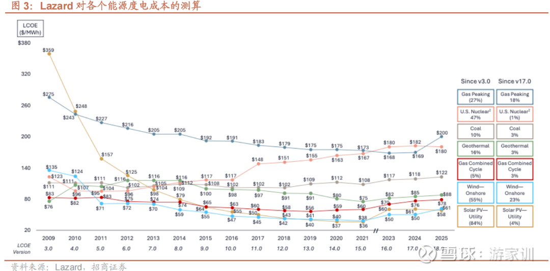 热电联产燃气轮机是美国成本领先的基荷电源。美国天然气资源丰富,根据EIA数据,天然气发电占比高达46.4%(2024年),位居全球第一。根据Lazard的测算,热电联产燃气轮机的度电成本仅次于光伏、陆风。但是风、光发电存在波动性和随机性,必须配置一定比例储能,才能在日内达到和燃气发电等价的发电曲线,总成本将高于热电联产燃气轮机发电。