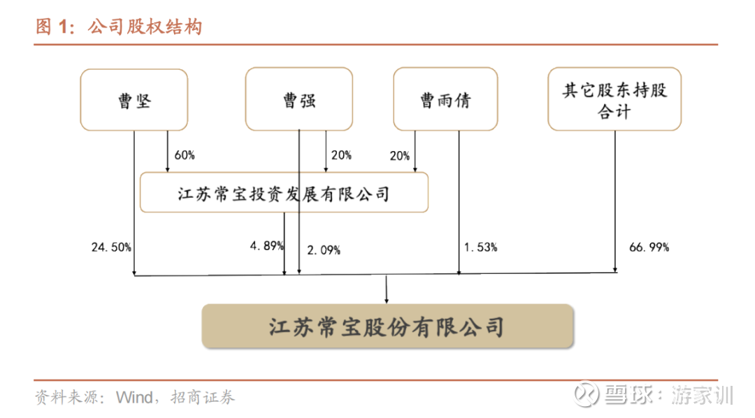 公司股权结构稳定,董事长曹坚家族通过一致行动关系合计持有 33.01%的股权。公司实际控制人为董事长曹坚,根据三季报数据,其直接持股 24.50%。其直系亲属曹雨倩(女儿),直接持股 1.53%,曹强(弟弟)直接持股 2.09%,三人为一致行动人。此外,三人还通过分别持有常宝投资的股权(曹坚 60%,曹强 20%,曹雨倩 20%),间接合计持有公司 4.89%的股权。三人目前合计持有公司 33.01%的股权。