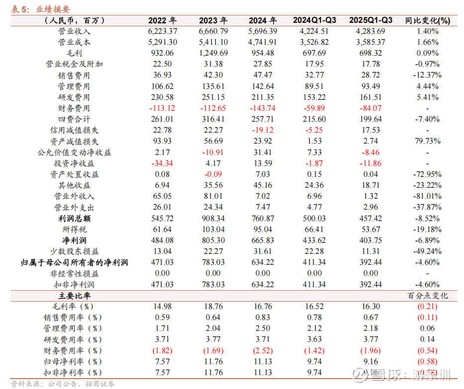前三季度业绩增速一般,但Q3已看到明显拐点。公司25年前三季度业绩表现一般,前三季度营收为42.84亿元,同比增长1.40%;归母净利润为3.92亿元,同比下降4.60%;扣非净利润为3.53亿元,同比增长0.80%。Q3业绩表现亮眼,业绩有明显拐点。单Q3营收14.72亿元,同比增长3.66%;归母净利润1.38亿元,同比增长61.15%;扣非净利润1.34亿元,同比增长40.60%。
