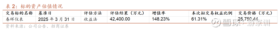 此次收购中,坤元评估以 2025 年 3 月 31 日为评估基准日,分别采用资产基础法和收益法对春晖仪表股东全部权益于评估基准日的市场价值进行评估,经分析最终选取收益法的评估结果作为本次评估结论。