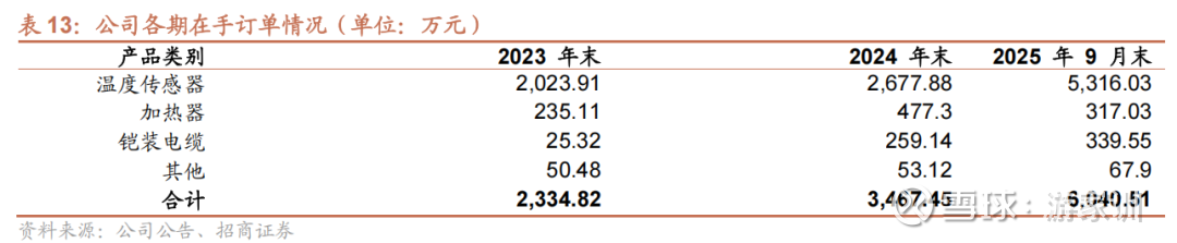 截至2025年9月末,公司在手订单金额达6,040.51万元,较2024年末增长约74%,其中温度传感器订单受益于SOFC爆发,实现翻倍增长。
