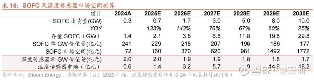 SOFC有望解决美国电力部署难的问题,装机规模可能快速增长。BE预计2026年年底产能达2GW,并表示未来产能需要进一步扩展到5GW,美国传统发电设备、输电设备投运周期长,SOFC有望快速渗透,预计未来需求有望达数十GW。温度传感器属于长周期消耗件,当热电偶测温漂移超过系统误差允许,即需要进行更换,每GW温度传感器用量约1-2亿元,若按5年为替换周期,公司将显著受益于存量市场增长。