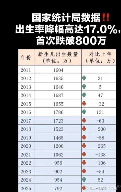 统计最新数据显示,2025年末全国人口较上年减少339万,全年出生人口792万,人口自然增长率已降至-2.41‰。
