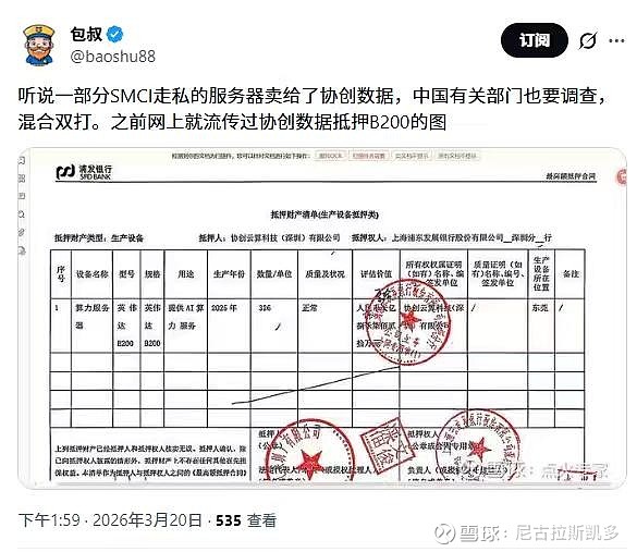 $协创数据(SZ300857)$ 这小作文都带上这么愚蠢的图了居然还有人信,说协创服务器是走私来的,那协创反手再把走私来的服务器抵押给银行?我都不说这金贵的服务器了,相信这个的人你们把自家黄金拿去给银行抵押,看看银行要不要求你们出具合法的来源证明。