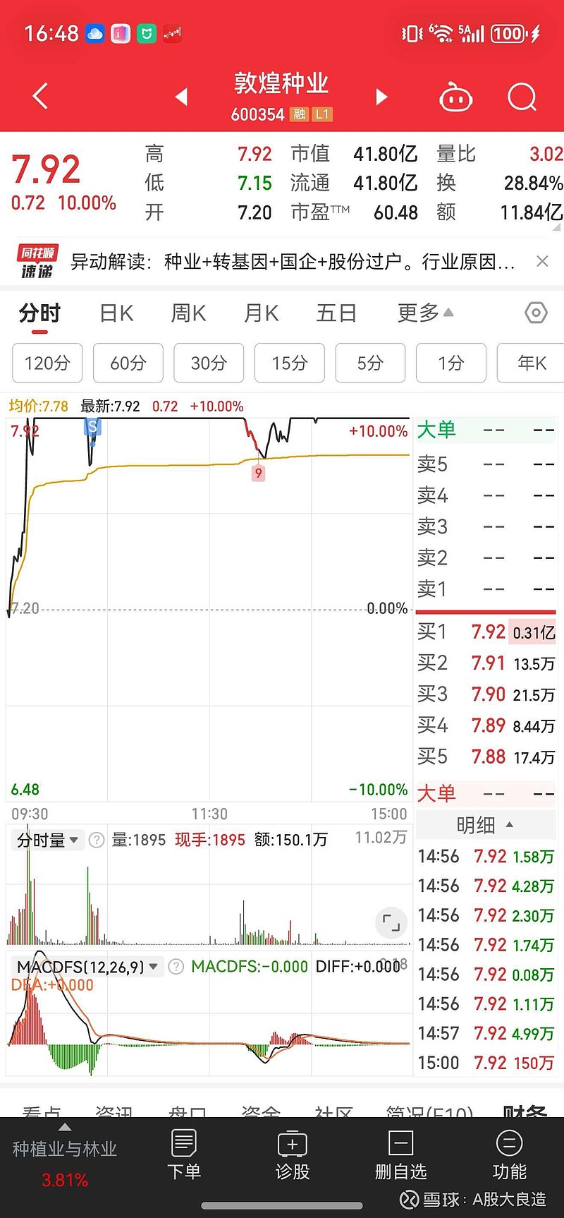 $敦煌种业(SH600354)$