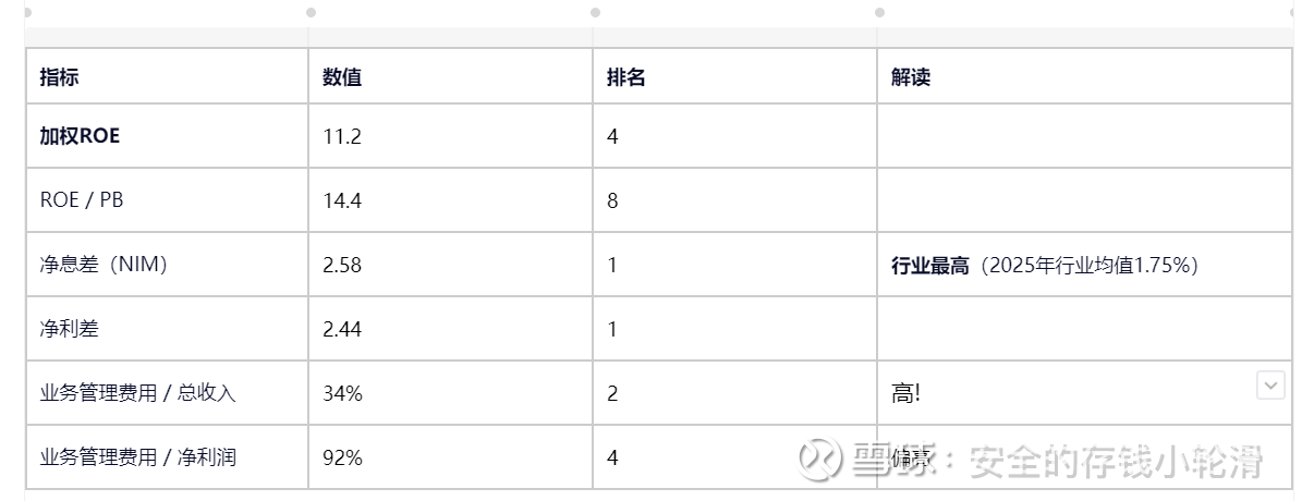 核心观点: 净息差2.58%(行业第1)+ 手续费增长364% → 盈利模式双轮驱动