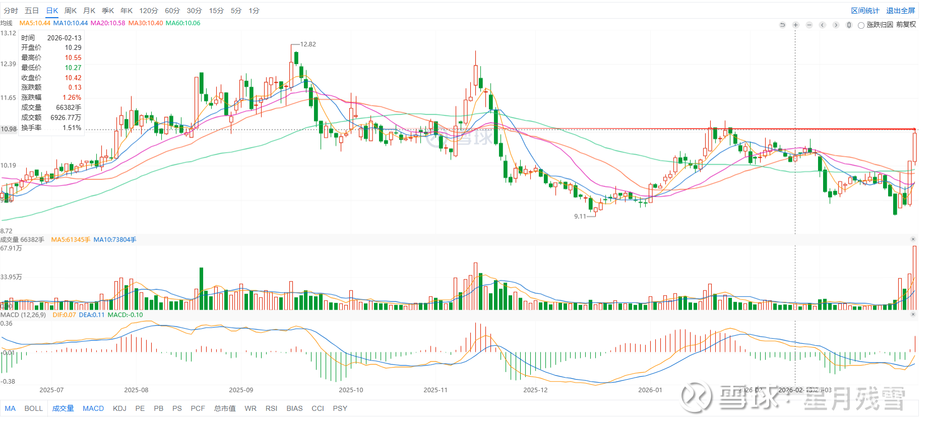 【压力位】第一压力11.18,第二压力12.82