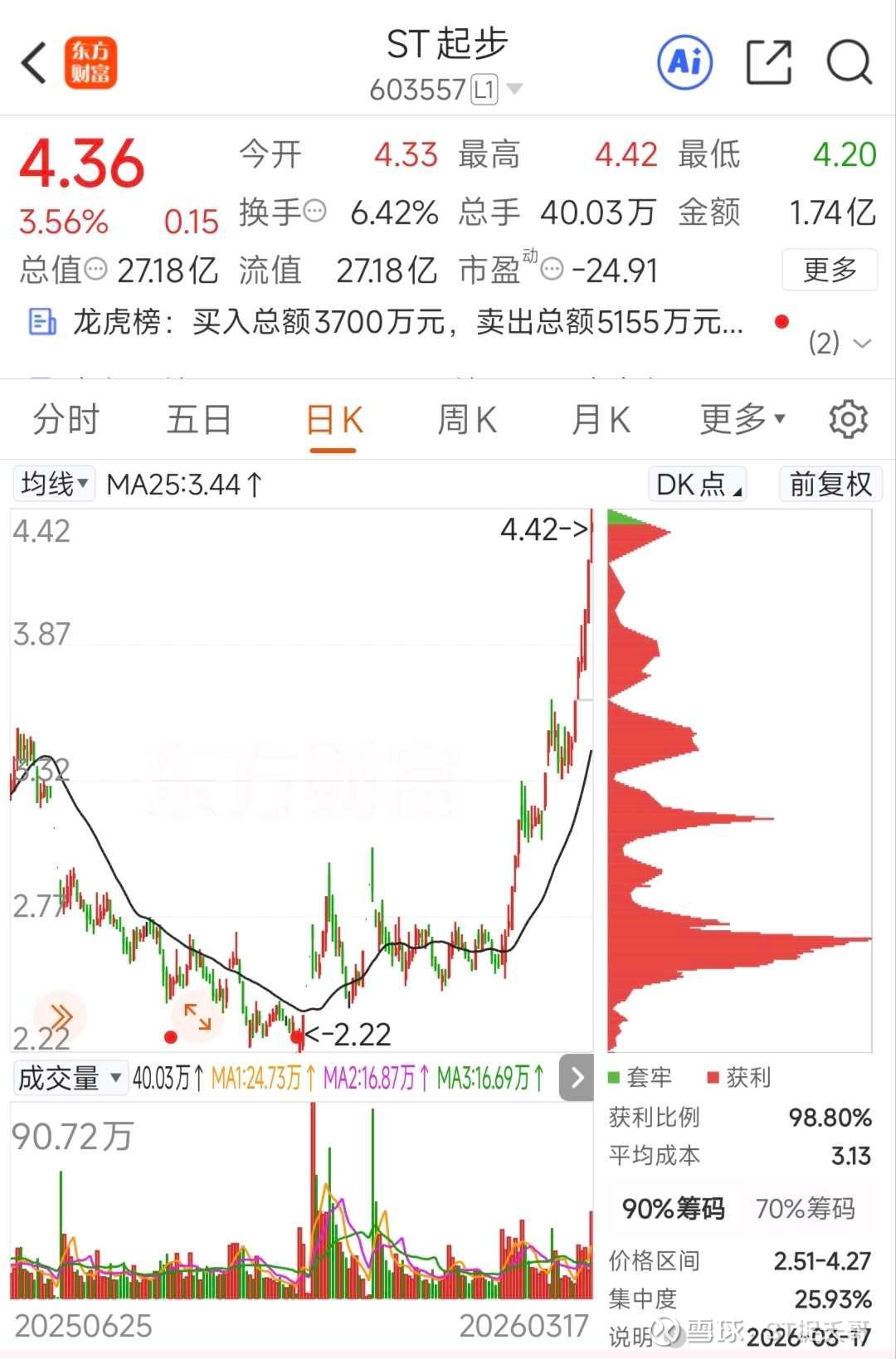 - 成交与换手:3月17日单日成交额1.74亿元,换手率6.42%,近5日累计换手率超14%,远高于ST板块平均水平,龙虎榜显示游资席位频繁进出,资金博弈特征明显。