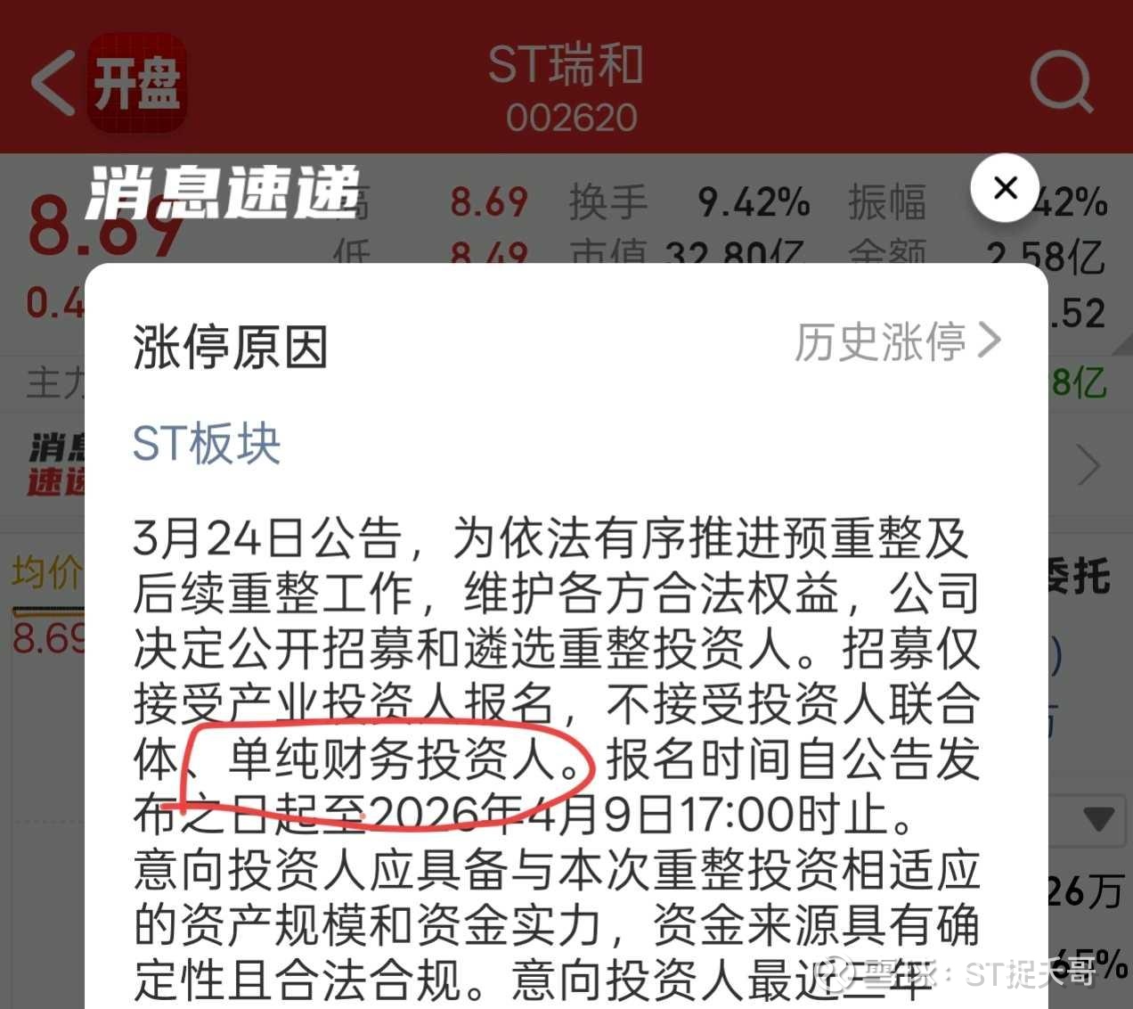 直到这一波连续一字板,我才认真去看公告。很多朋友也跟我一样都不理解:不就是个遴选投资人的公告吗?重整去年就知道了,凭什么被资金抢成这样?