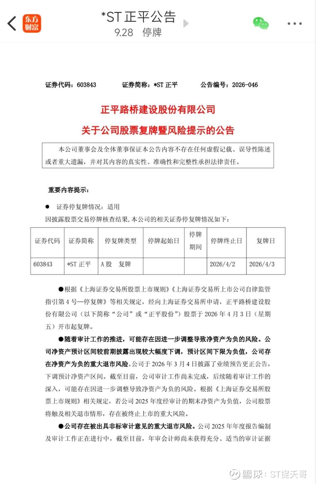 就在刚刚,正平的复牌公告终于出来了,明天(4月3日)如期复牌,可盼了好久的一债会结果、战投相关的利好,半个字都没提,相信不少球友跟我一样,心里咯噔一下,甚至有点慌:一债会3月30号就表决截止了,明明有重磅消息,为啥不跟复牌公告一起发?难道是结果不好,藏着掖着?还是重整要黄?