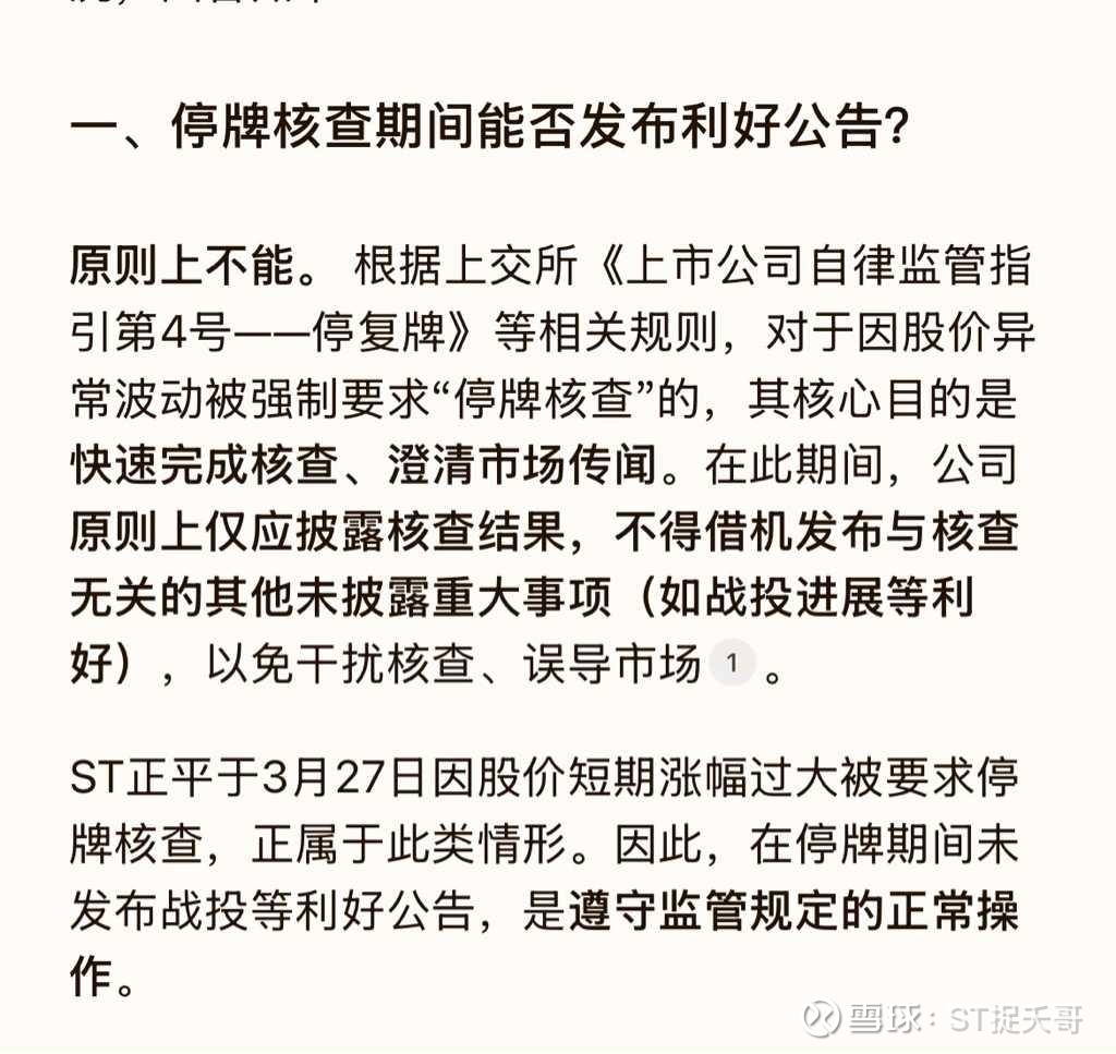 玩ST股,拼的不是短期涨跌,是耐心和对规则的理解。ST正平不把一债会结果跟复牌公告一起发,核心是监管规则不允许,次要原因是流程时间不匹配,跟利好是否落地、重整是否成功半毛钱关系没有。