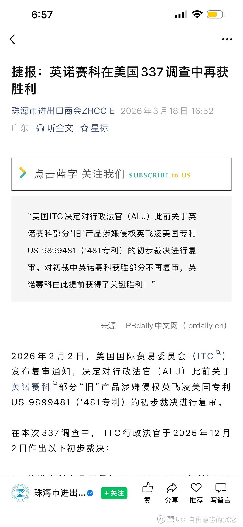 市场最担心的美国市场禁令风险,已经彻底消除!至于初裁中涉及的少量旧产品侵权认定,这些旧产品早已被新产品全面取代,公司已经完全停止生产和销售,对公司当前及未来的经营业绩、海外业务拓展,没有任何实质性影响。更关键的是,ITC已启动对该旧产品侵权初裁的全面复审,甚至对涉案专利本身的有效性提出了明确质疑,后续仍有全面翻盘的可能。