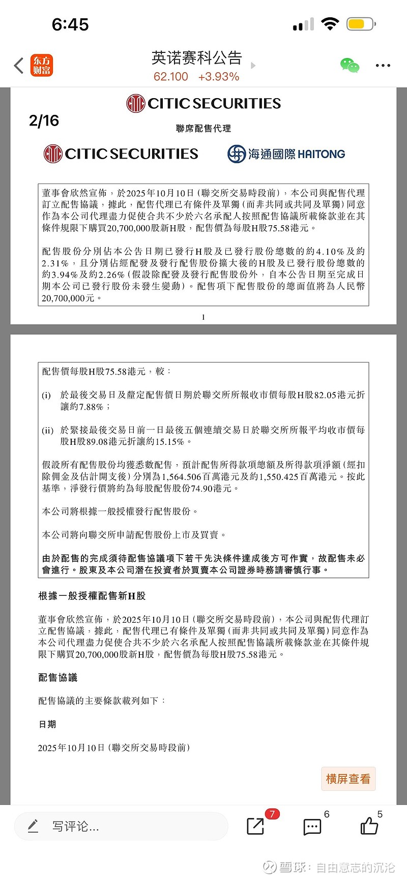 1. 机构真金白银的认可,不是虚的市值管理:能参与港股大宗配售的,都是具备全产业链深度投研能力的国际长线机构、产业资本,他们经过了完整的公司尽调、行业景气度验证、未来业绩测算,才愿意以75.58港元的价格锁定6个月以上的筹码,这是对公司长期价值的硬核投票;