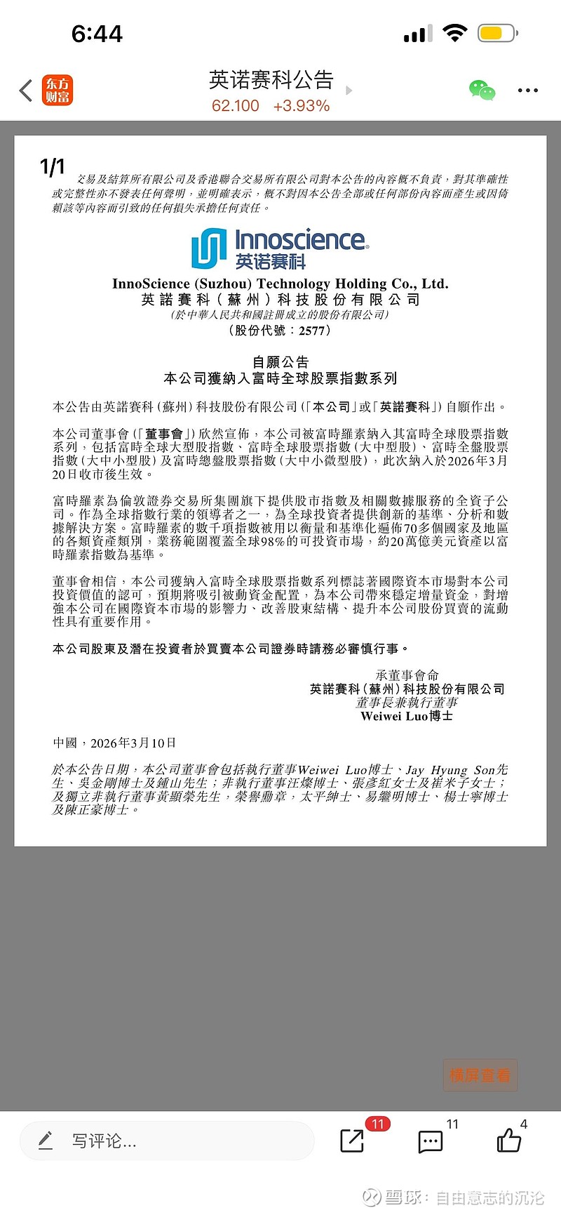 2026年3月10日,公司发布公告,正式被富时罗素纳入富时全球股票指数系列,涵盖富时全球大型股指数、富时全球股票指数(大中型股)、富时全盘股票指数(大中小型股)等核心指数,此次纳入于2026年3月20日收市后正式生效。