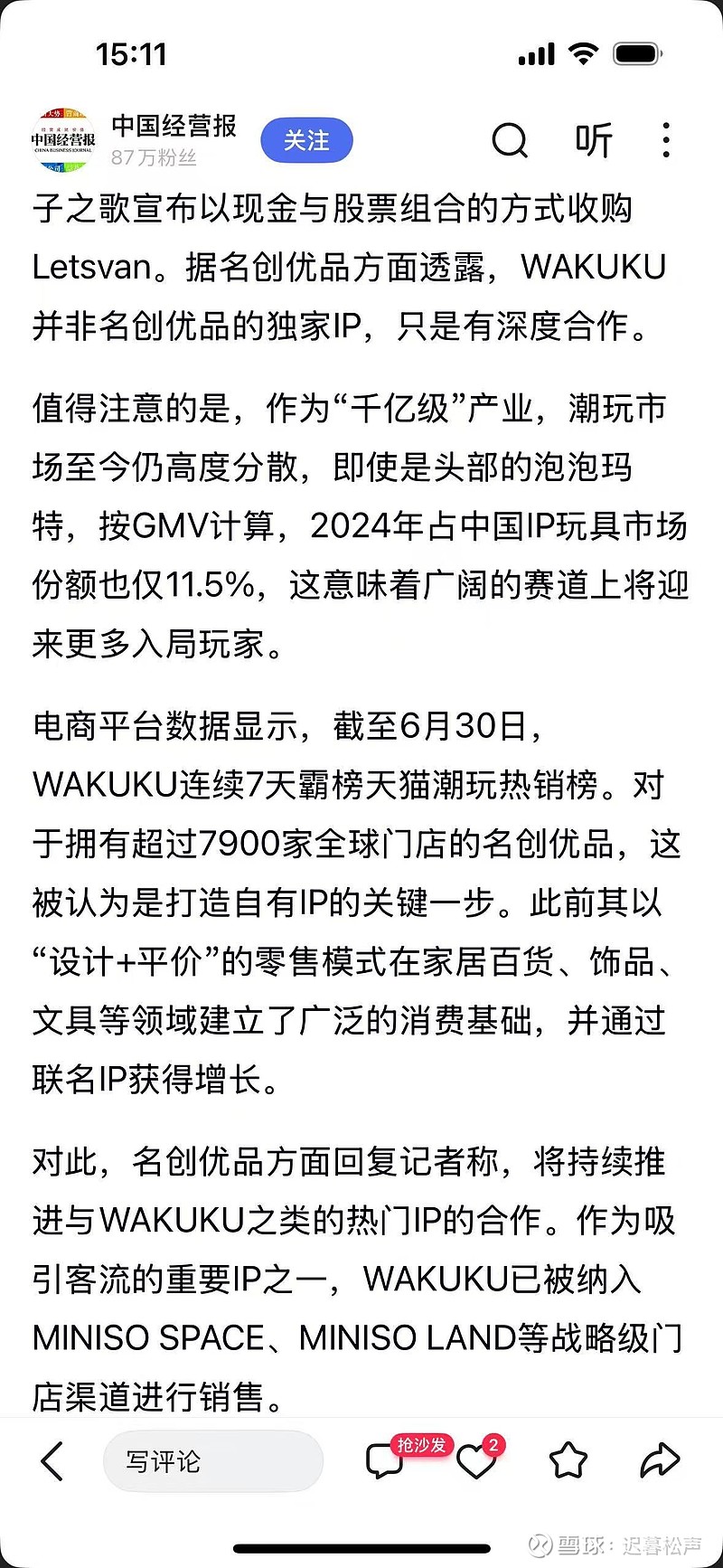 才占11.5%,量子带着wakuku入局,与miniso联合势头不错,会不会在这片蓝海闯出一片天?