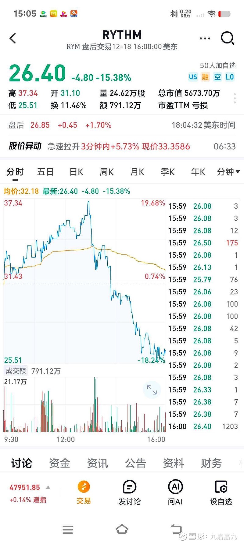 今天RYM公司股价剧烈震荡,最终收市较昨日反跌15%,原因可以见这个新闻报道。