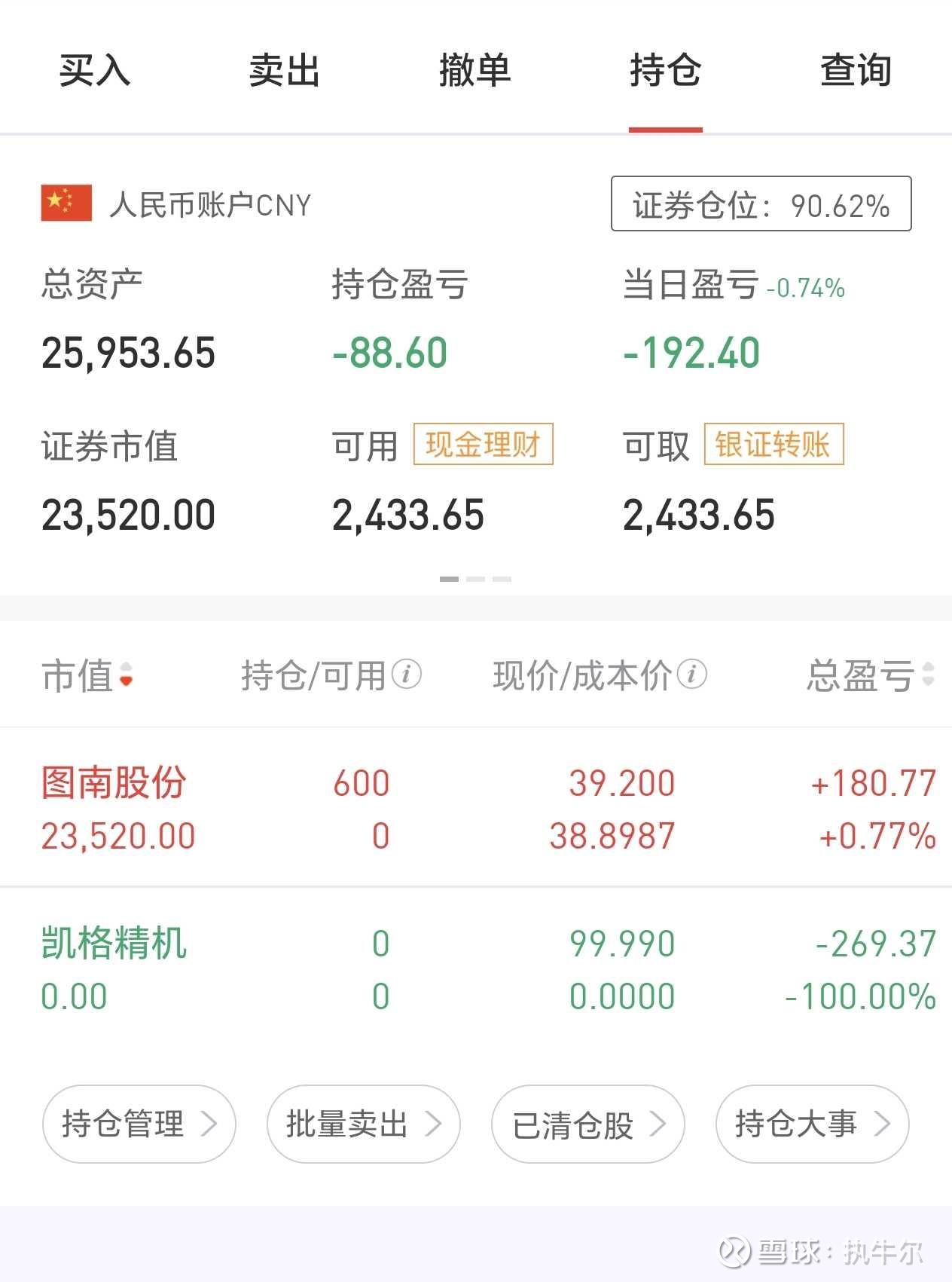 今天本来打算按兵不动的,看着商业航天开始回暖,航发三兄弟涨停,图南不懂是跟的哪个题材的,于是卖出凯格,换到$图南股份(SZ300855)$ ,一度涨停,但是最终还是炸了,这个老六好像历史上就没涨停过,还以为今天要创造历史了。后来发现这个高温合金材料可能炒的是大飞机发动机。明天别给我面就好。