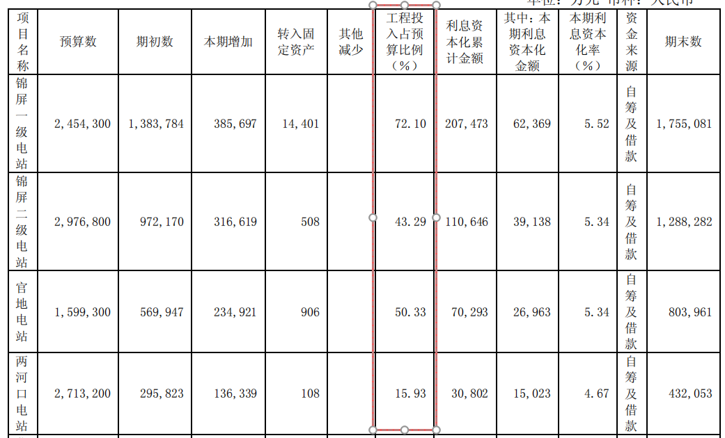 从在建工程披露中大概可以判断各个水电站的建设进度。