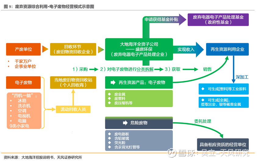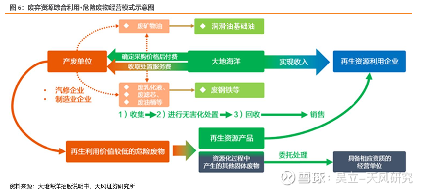 1)公司现已占据产业核心生态位——资源化利用环节。公司主营1)危险废物业务,能对废矿物油,废乳化液、废滤芯、废油桶实现资源化利用和无害化处置,创新的“一站式”收集模式为汽修企业解决痛点;2)电子废物业务,能对“四机一脑”等电子废物拆解后销售给下游再生资源利用企业,全资子公司盛唐环保是浙江省废弃电器电子产品处理龙头。