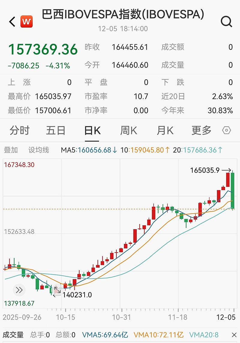 巴西大跌,据说因为前总统支持儿子参加大选,导致政策不连续风险…..明天