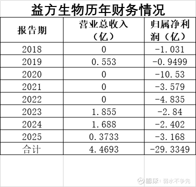 益方生物2025年业绩快报显示,全年营业收入仅 3732.53万元,同比骤降 77.89%;归母净利润为 -3.17亿元,亏损额进一步扩大。自2022年上市以来,公司已连续四年亏损,累计亏损额高达13.24亿元。这意味着,即使拥有两款上市产品,公司2025年实际从市场赚到的钱(销售分成)仅有3000余万元,完全无法覆盖高昂的研发成本。