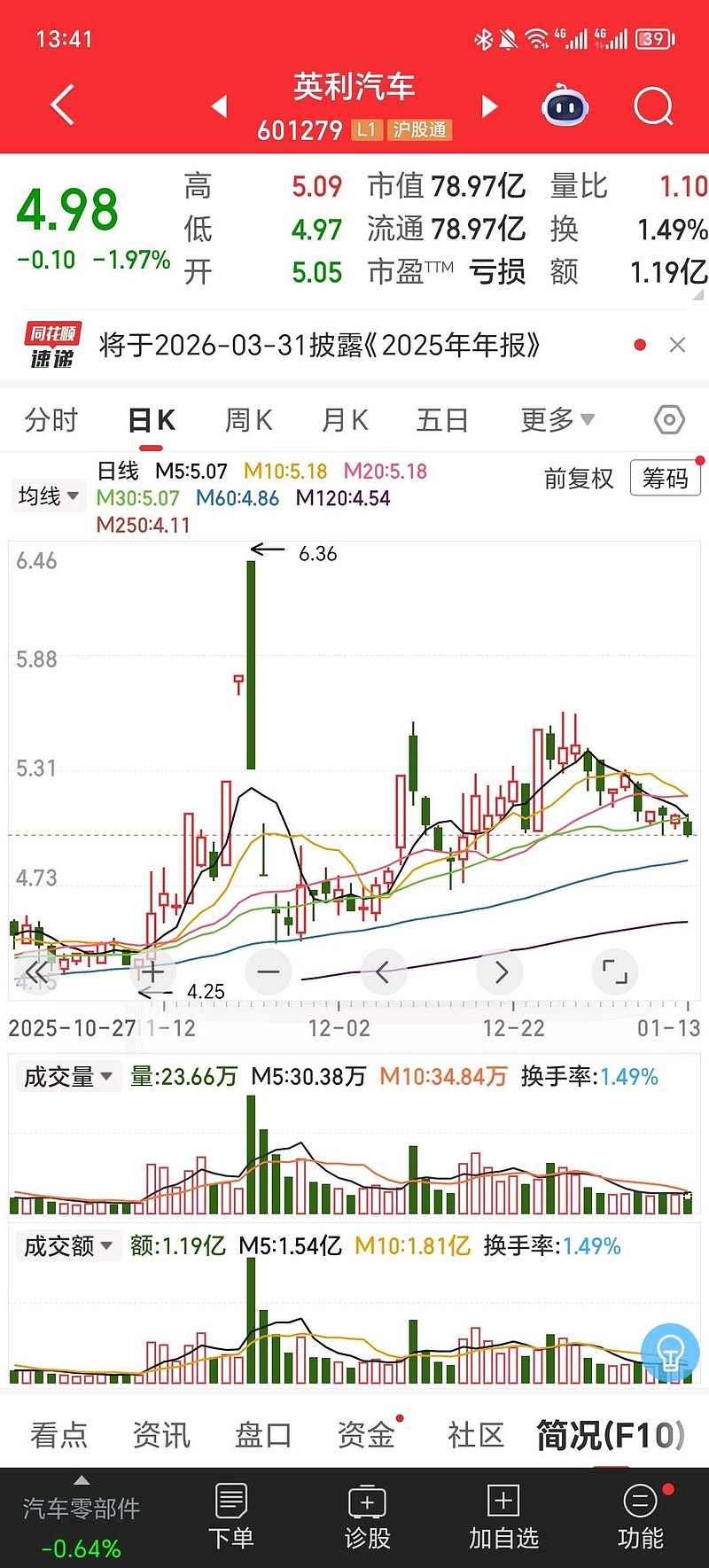 $英利汽车(SH601279)$