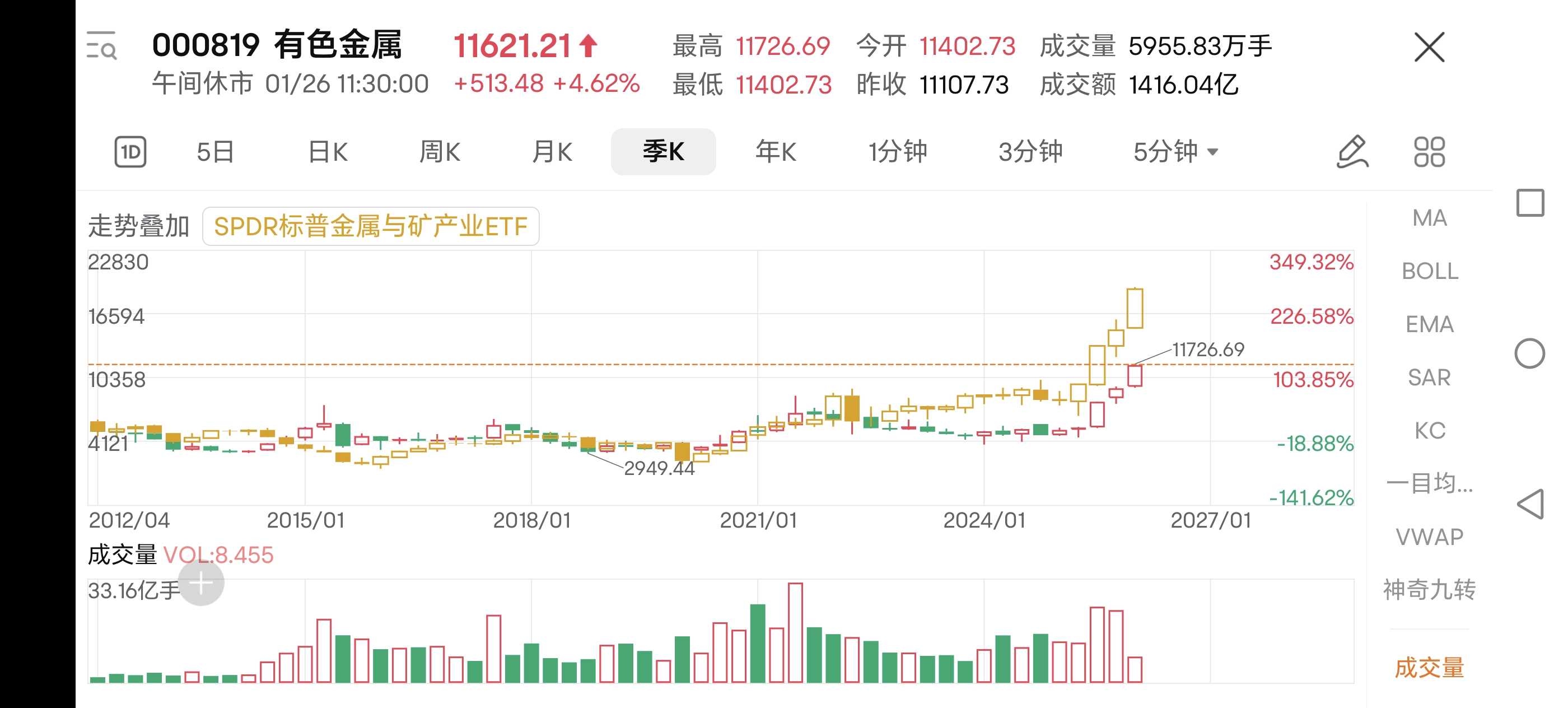 看到上涨逻辑,更关键的是当下的持仓策略,我一直重仓有色金属板块,一月份以来也关注到两热的现实,同时必须理解有色金属股的高弹性,核心还是要尊重市场趋势。这是对市场风险的敬畏和尊重。在资金和基本面双重支撑的背景下,人为去预判顶底往往会错失行情。我觉得操作思路很明确:且行且珍惜,坚定持有手中标的,不做“先知先觉”的卖出决策。如果后续板块出现明显回调,或者走出明确的下跌拐点,就通过止盈的方式锁定利润;但如果趋势依旧向上,就继续持有,不被自己的主观猜想左右。