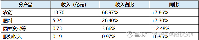 其中农药业务是核心,肥料是重要配套,园林资材与服务收入