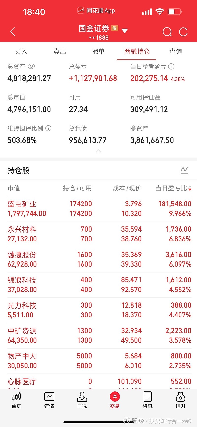 今天盛屯终于迎来了久违的涨停,但期间涨停多次打开,股价/换手率都创了新高,感觉后面会有反复,而且盛屯也达到了我之前定的第一目标位10元,所以在涨停价附近卖出了13万股,还剩约64万股,并还掉融资60多万元。今日盈利77.7万,今年累盈516.9万元。$盛屯矿业(SH600711)$ $广联达(SZ002410)$