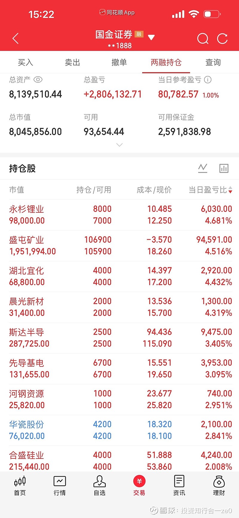 今日光伏又拖后腿了。今日约补了差不多40万的仓位,个股下跌时正是补仓的好时机。$盛屯矿业(SH600711)$ $天齐锂业(SZ002466)$