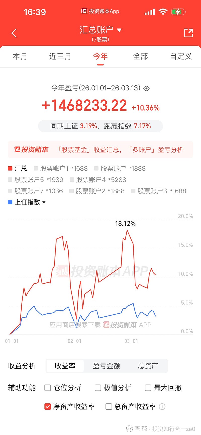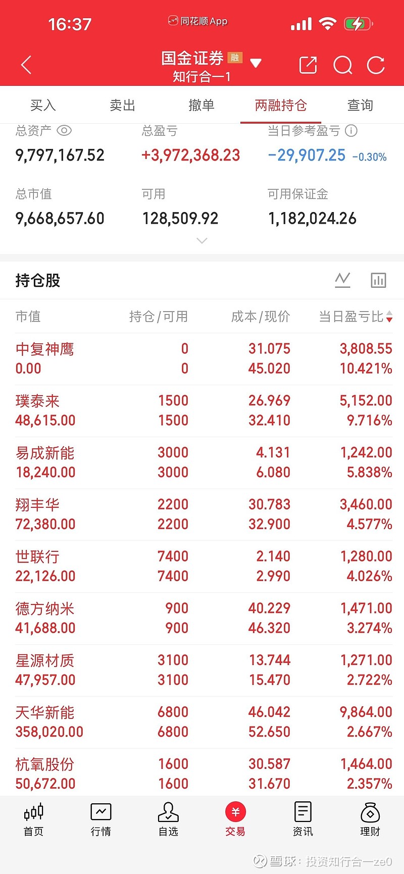 今日亏损5万,今年累盈146.8万元。融资负债328万,净资产约1591.3万元。今日减仓约70万元。今日盘中最多盈利近50万,结果收盘变成亏损5万,盘中富贵一场。