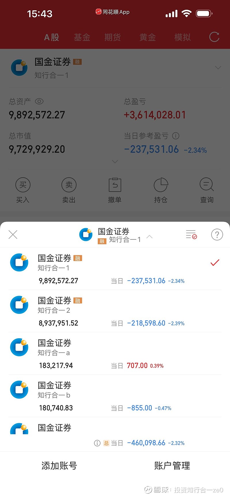 今日亏损46万,今年累盈82.6万元。融资负债409.8万,净资产约1527.3万元。今日增仓约61万元。今日早盘最多盈利近20万,收盘亏损了46万。
