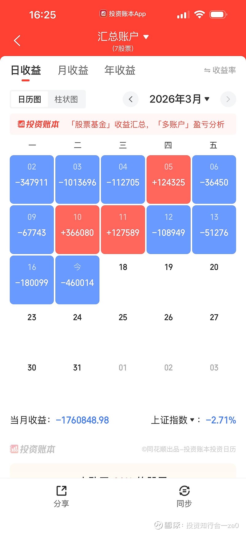 3月份持续亏损,没有盈利几天,没有别的办法,继续坚守吧。$盛屯矿业(SH600711)$ $天齐锂业(SZ002466)$