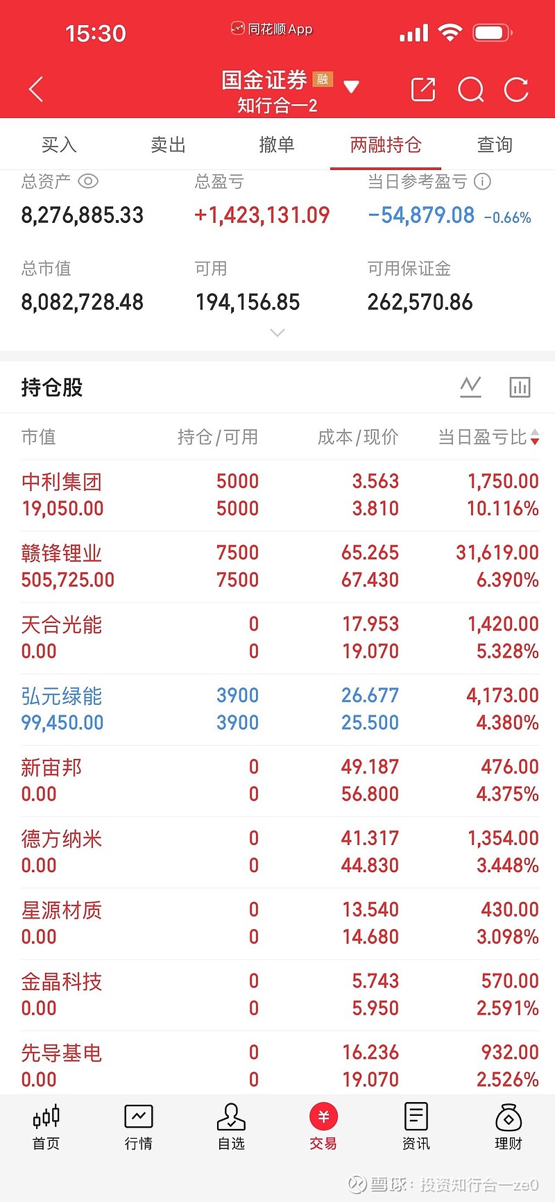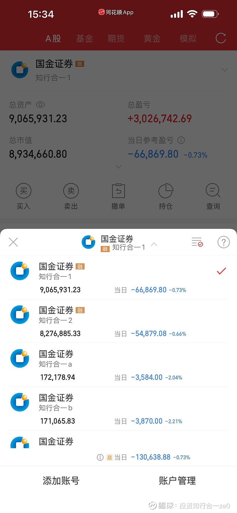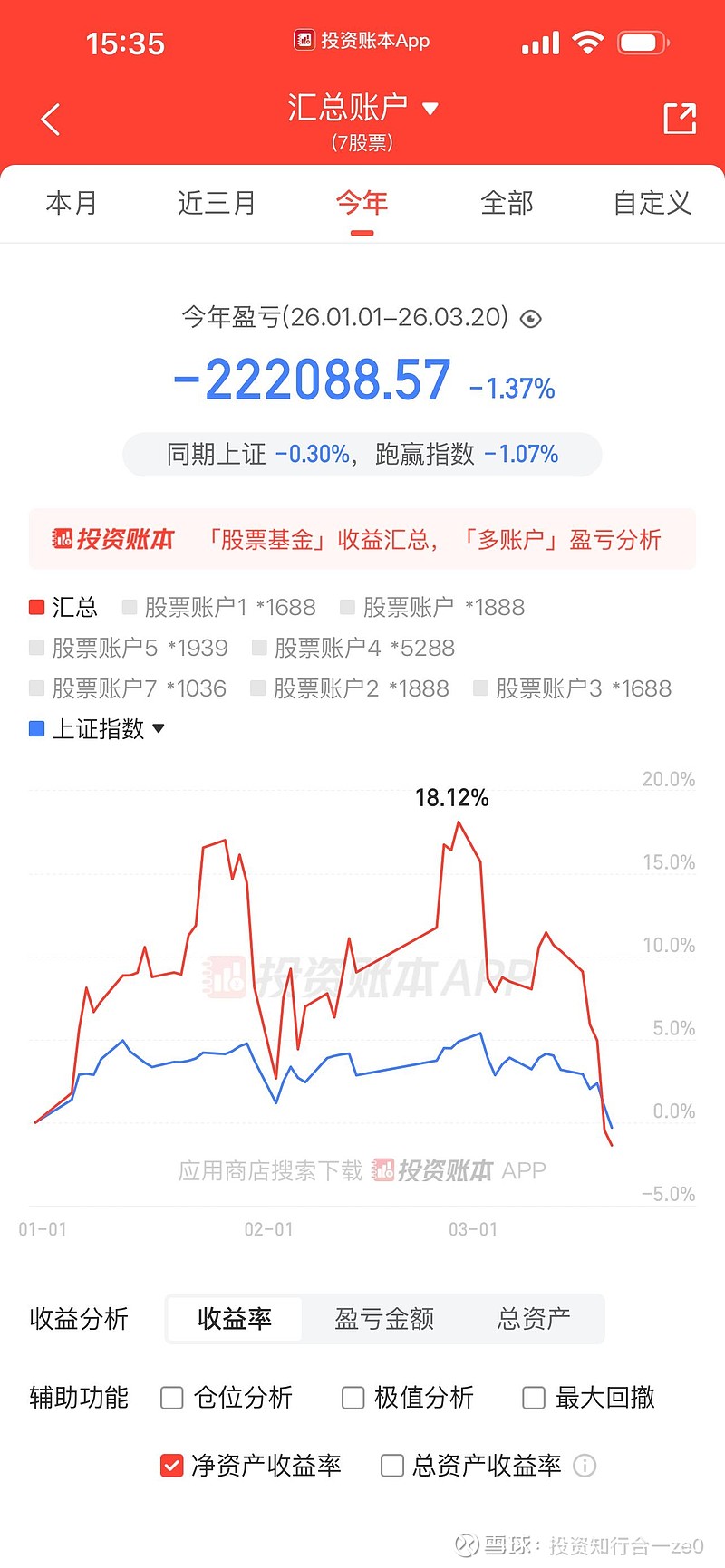 今日亏损13万,今年累亏22.2万元。融资负债363万,净资产约1422万元。今日减仓约73万元。今日盘中最多盈利50多万,结果收盘变成负10多万,万恶的量化。