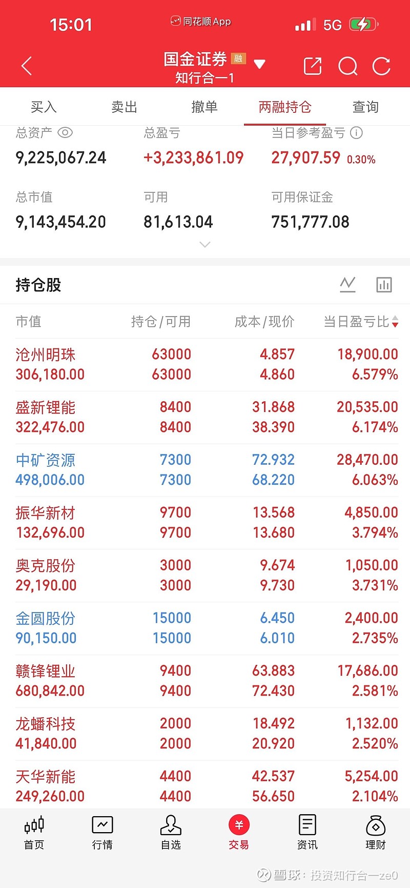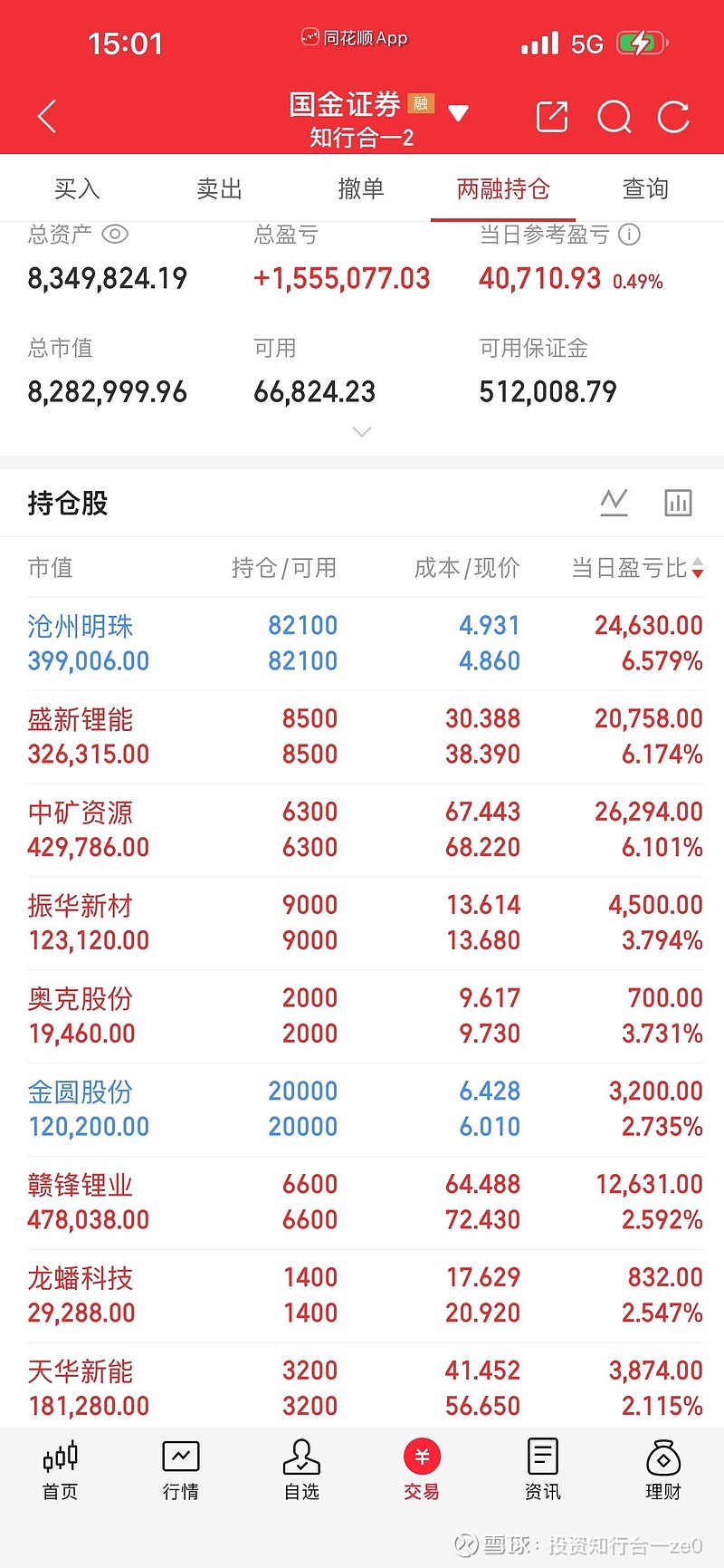 今日手中上涨的都是锂矿/锂电池概念股,其它的股都下跌较多,可惜把锂矿龙头容姐给卖早了。逢高抛了些锂矿,补了点手中调整较多的个股。屯今日缩量调整,没有打操作。$盛屯矿业(SH600711)$ $天齐锂业(SZ002466)$