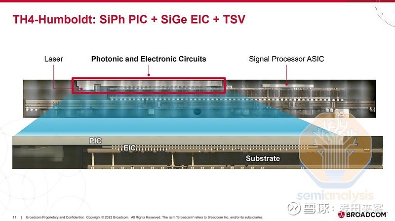 在该设计中,博通采用了硅锗(SiGe)工艺的电子集成电路(EIC),而在其下一代产品(即“贝利”(Bailly))中,则切换为互补金属氧化物半导体(CMOS)工艺。