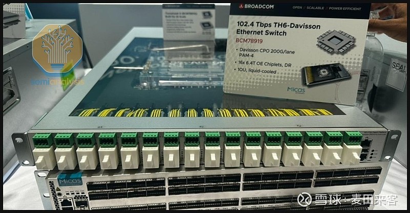 今年,博通公司将推出基于“战斧6”(Tomahawk6芯片架构的戴维森(Davisson)系列共封装光学(CPO)交换机,该系列交换机内置16个速率为6.4太比特/秒的光引擎。交换机的专用集成电路(ASIC)采用台积电(TSMC)的N3工艺节点制造,单封装带宽可达102.4太比特/秒。博通将整机装配业务交由迈卡斯(Micas)、天弘(Celestica)等合约制造商(CM)负责。此外,有消息称日本电信电话株式会社(NTTCorp)正采购博通的“战斧6”(TH6)裸片,并计划采用自研的光引擎及光学解决方案(非博通供应)打造自有CPO系统。这种模式不仅拓展了基于“战斧6”芯片的CPO系统的潜在商业机遇,更有助于推动形成一个更加开放的供应商生态体系