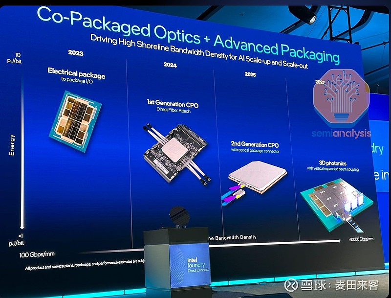 英特尔在今年的英特尔FoundryDirectConnect中公布了其CPO路线图,并概述了4个阶段的发展路线图