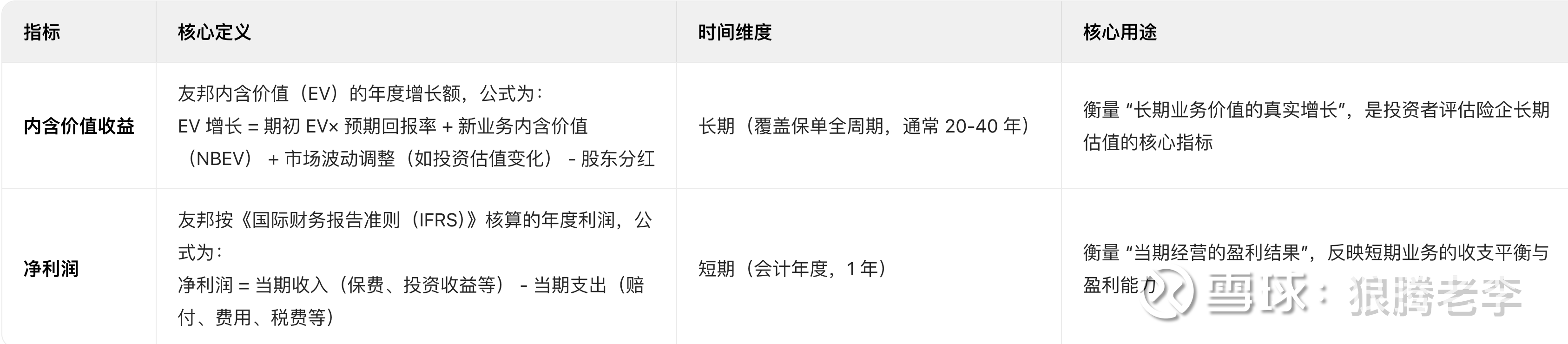 1、内含价值才是友邦的真正资产,买股票其实就是买内含价值,因为分红回购,收益等都是用内含价值这个核心观念来关联起来的。这次友邦估值有了大的调整,舍弃了净利润的估值体系,将内含价值收益作为资产收益的核心锚点。内含价值资产每年产生两部分收益,第一是内含价值预期回报,第二是新业务价值。