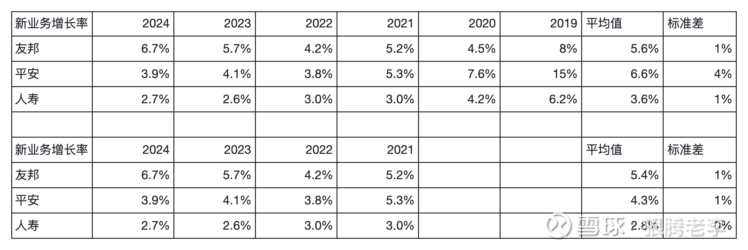 表5:三家保险公司的新业务相对于内含价值的增长率的比较