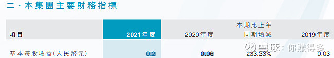 2021年每股盈利0.2元,大幅超越2020年每股盈利0.06元,